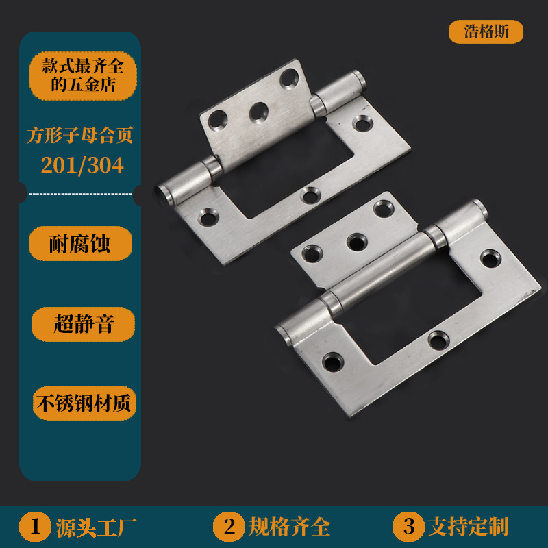 Produsen Grosir 4 Inci Stainless Steel 201304 Persegi Engsel Ibu Ekstra Tebal Lemari Pintu Kayu Engsel Halus Halus