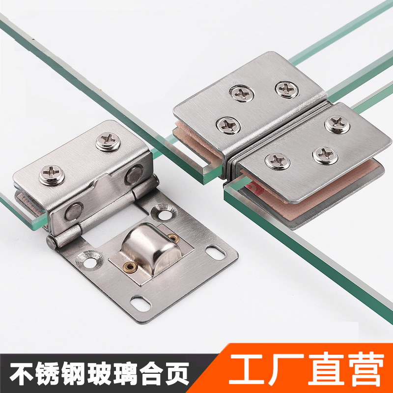Hole-free engsel kaca tanpa bingkai, kaca tempered klip longgar daun perhiasan kabinet klip pintu engsel baja tahan karat klip pintu bilateral