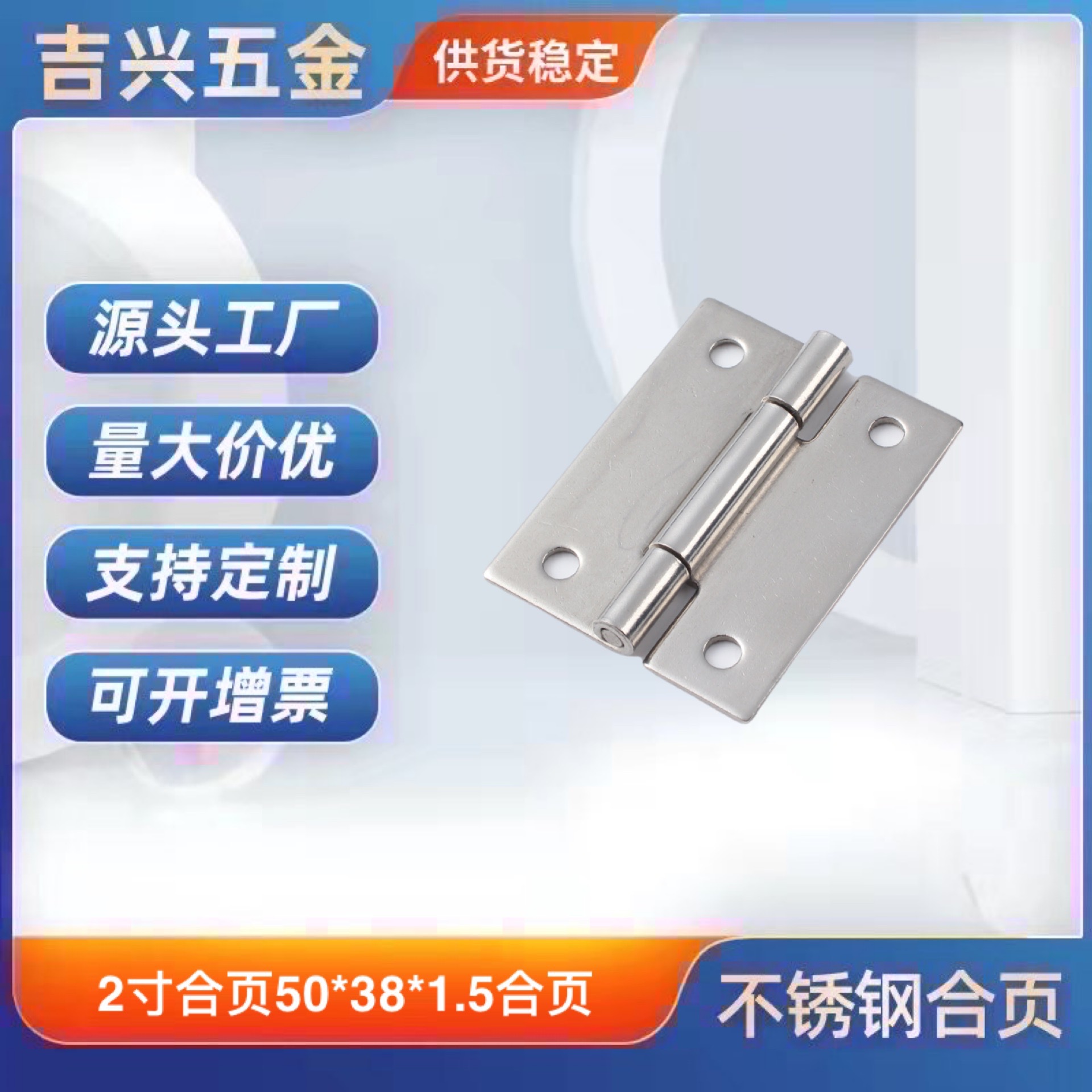 Pemasok 304 pintu kabinet engsel baja tahan karat lipat datar 2-inci 50*44*2mm engsel peralatan industri