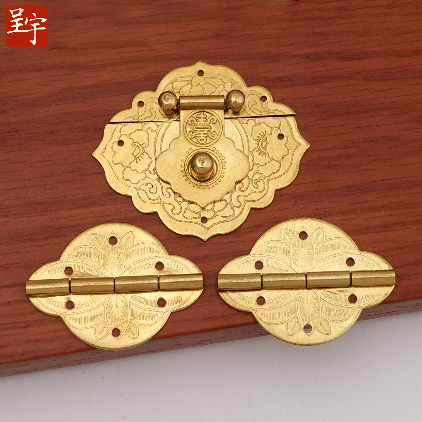 Yunchang perangkat keras engsel layar engsel retro Xiangyun daun teratai kotak kayu engsel besi kemasan kotak link piece
