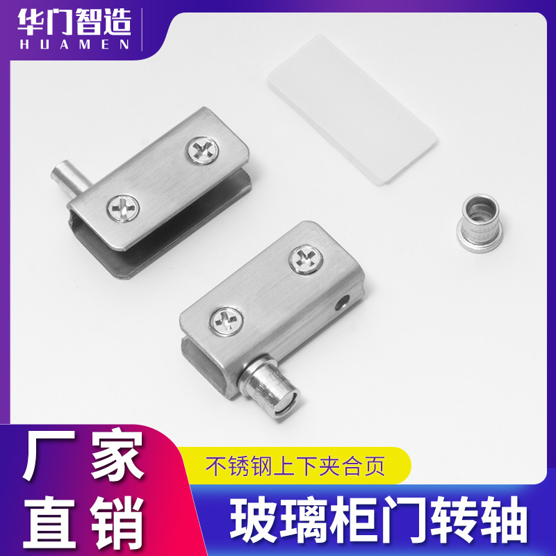 Huamin layar kaca pintu kabinet atas dan bawah klip pintu poros berputar baja nirkarat kaca engsel lemari pintu berputar poros grosir