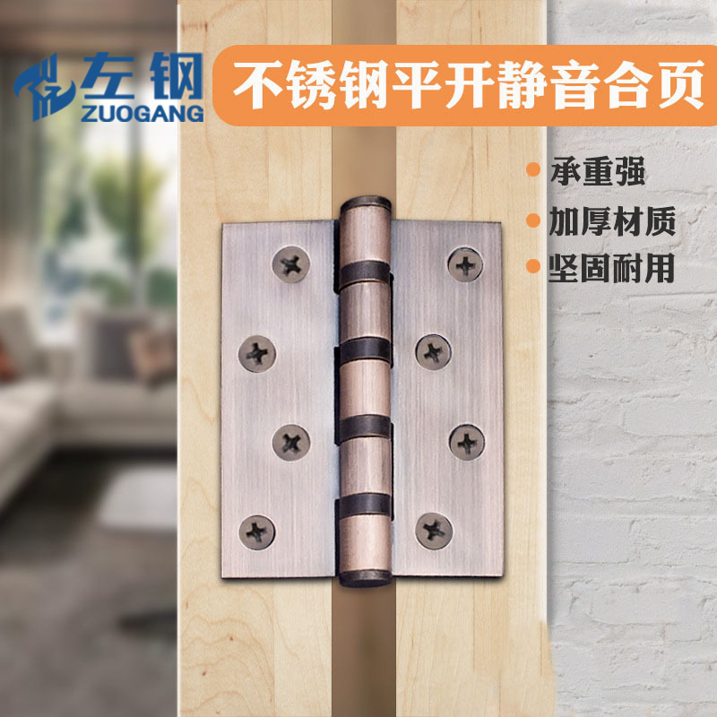 Engsel datar baja tahan karat tebal dari baja kiri 4-inci bebas lubang aksesori bantalan pintu senyap grosir perangkat keras
