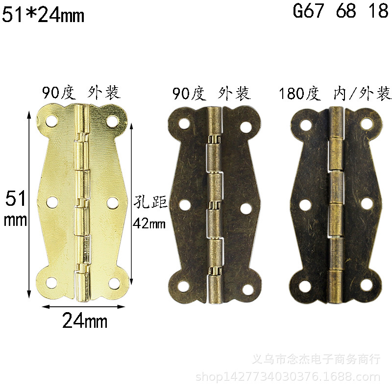 51*24MM engsel instalasi luar 90 derajat antik kupu-kupu engsel kupu-kupu engsel kotak hadiah engsel besi
