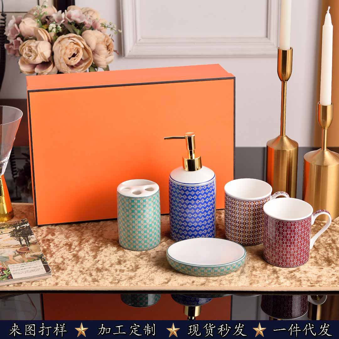 Perakitan Penyimpanan Kamar Mandi Kelas Atas Retro Gaya Eropa Cangkir Obat Kumur Cangkir Penyimpanan Sikat Gigi Kotak Sabun Emulsi Porselen Tulang Botol Penggantian