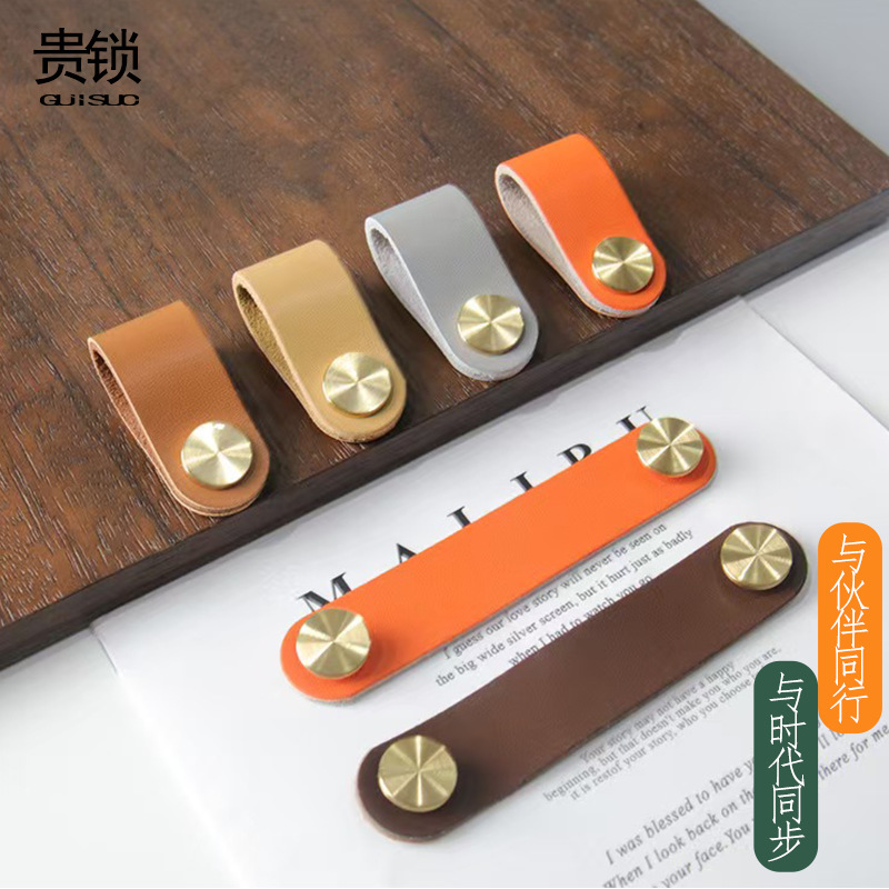 Kulit sapi asli Kuningan, cahaya pegangan mewah pintu lemari pakaian kamar anak-anak tebal pegangan laci Gelang gesper meja samping tempat tidur multi-fungsi