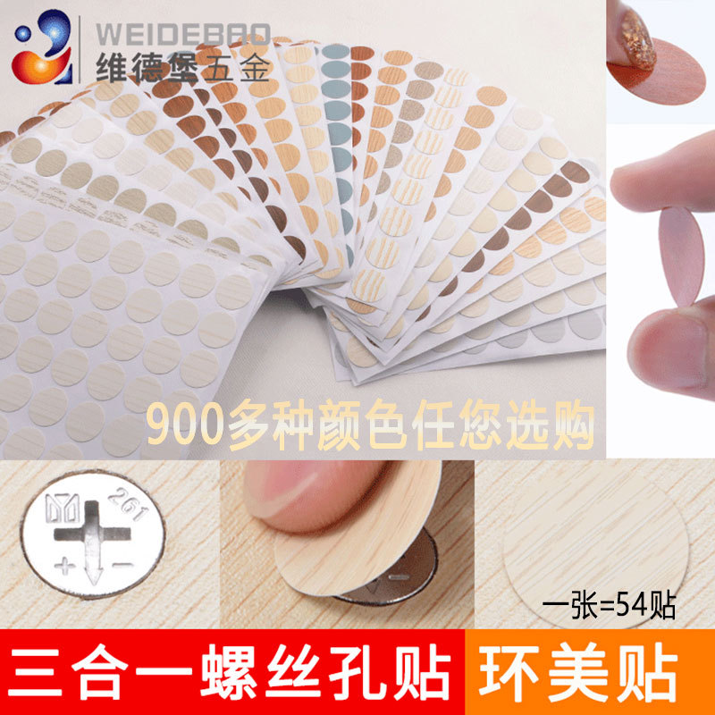 Pasokan langsung kartu warna tiga-dalam-satu cincin kecantikan stiker furnitur lubang segel penutup debu stiker furnitur tiga-dalam-satu stiker