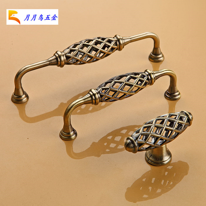 Pastoral kandang burung pegangan perunggu Utara Eropa antik spiral kabinet mebel lemari pakaian pegangan pintu