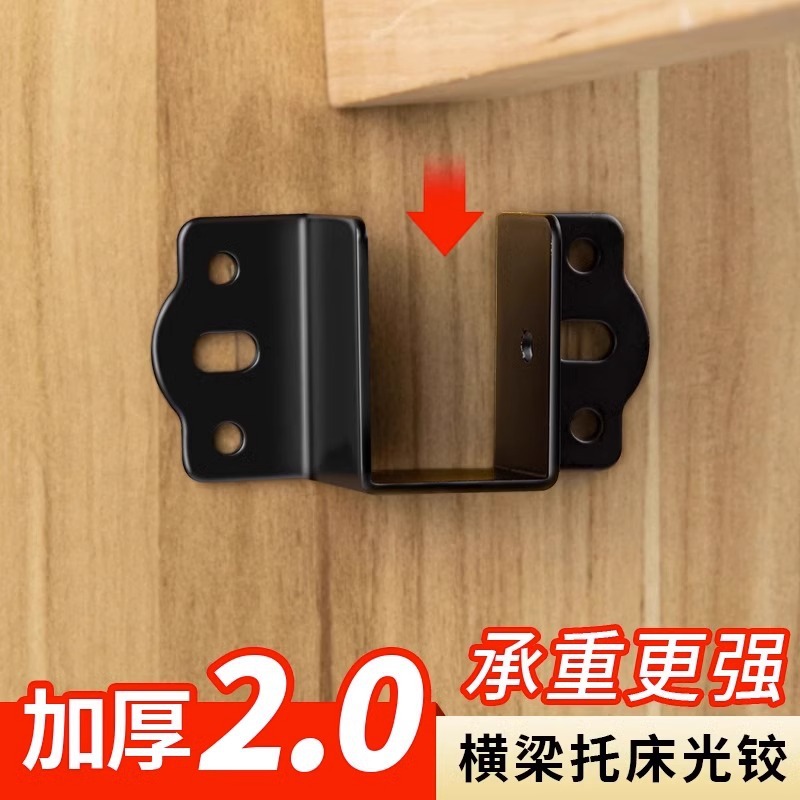 Engsel tempat tidur hitam berbentuk U, braket tempat tidur kayu solid, kait tempat tidur, papan braket tetap