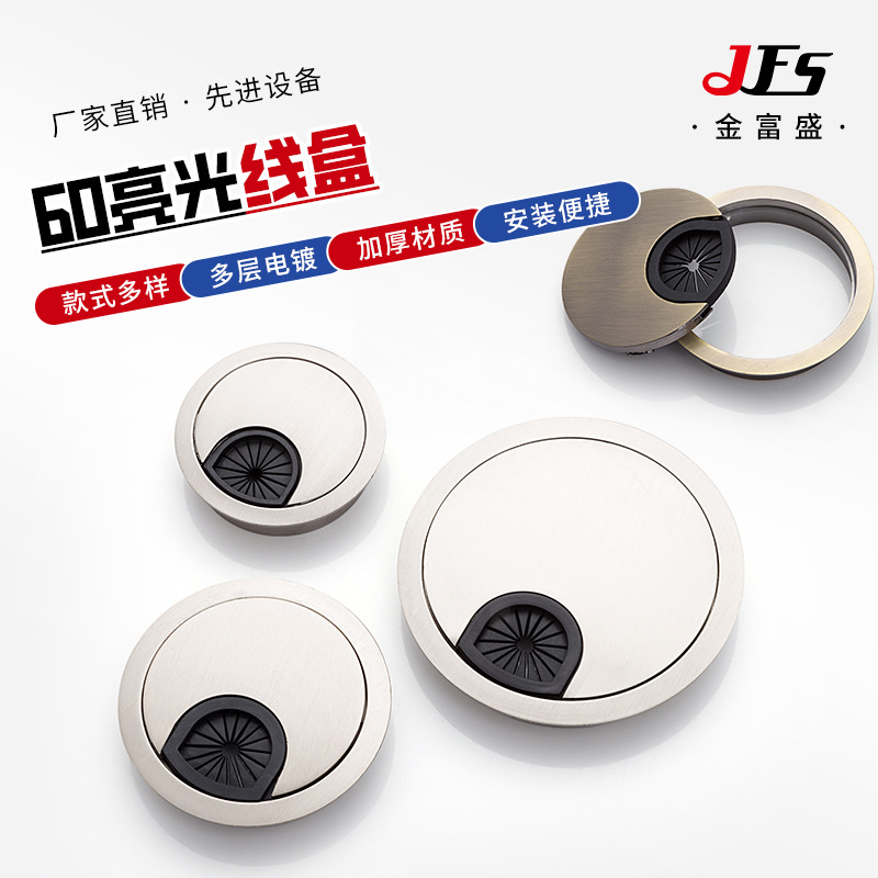 Kotak kabel bulat paduan seng 60, kotak kabel meja kantor, aksesori perangkat keras, penutup dekoratif meja komputer