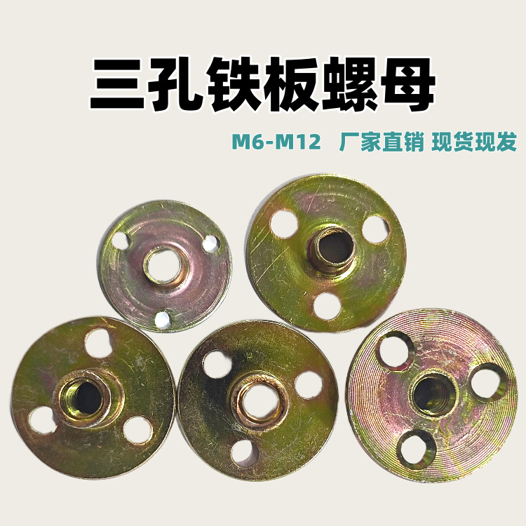 Mur Plat Besi M6M8M10M12 Tiga Lubang Mur Konektor Perabotan Mur Pengunci Mur Dinding Panjat