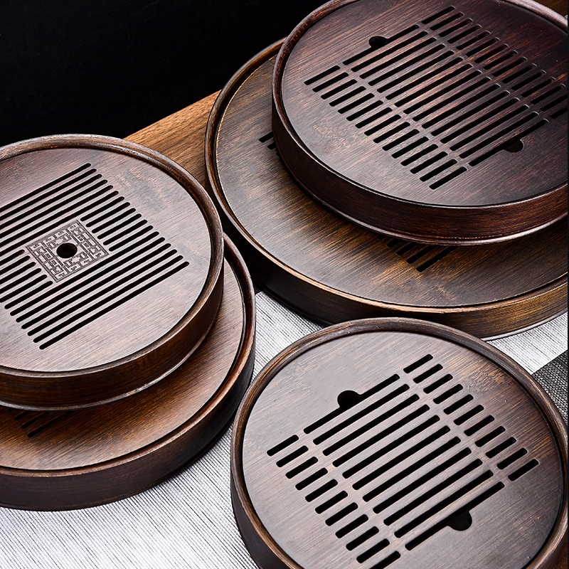 Penyimpanan air bambu Retro baki teh bulat rumah tangga, meja teh bulat bambu meja kering set teh kung fu aksesori upacara minum teh laut
