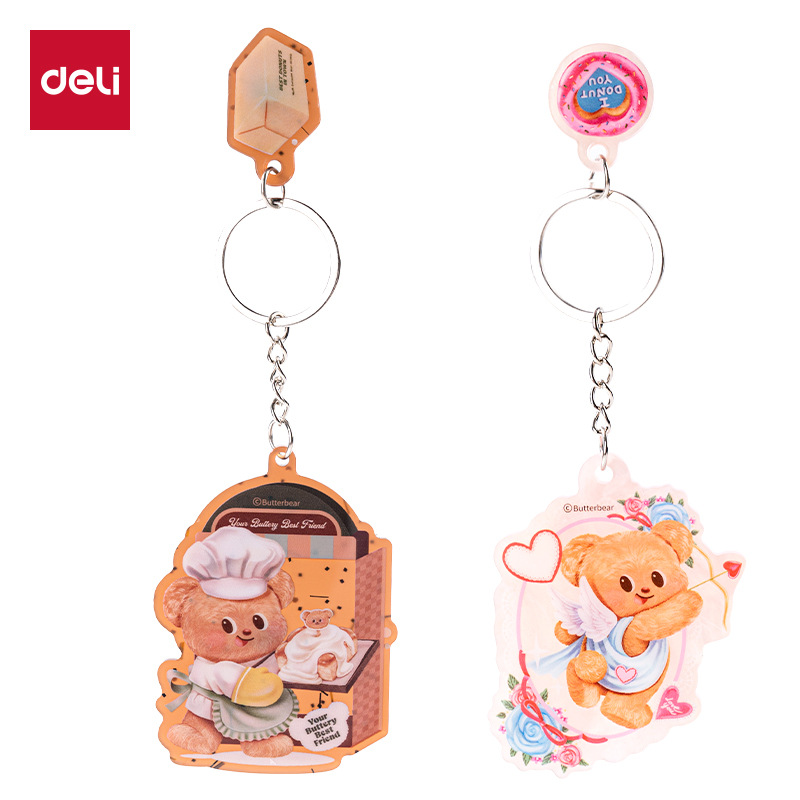 Deli HY858 Gantungan Kunci Liontin Akrylik Bahan Papan Warna Warna-warni Beruang Kecil Mentega Cincin Gantungan Kunci Kreatif Gadis