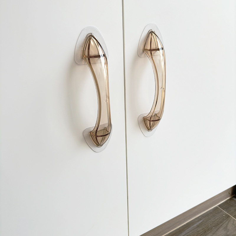 Pegangan transparan multifungsi berbahan kristal tanpa jejak, perekat sendiri, untuk lemari, lemari pakaian, pintu geser, tanpa bor, untuk penggunaan di rumah
