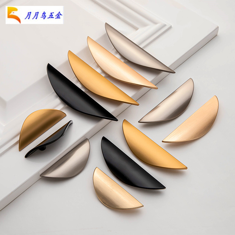 Pintu Kabinet tembaga hitam pegangan lemari kabinet perangkat keras Nordik sederhana emas sabit pegangan modern baru