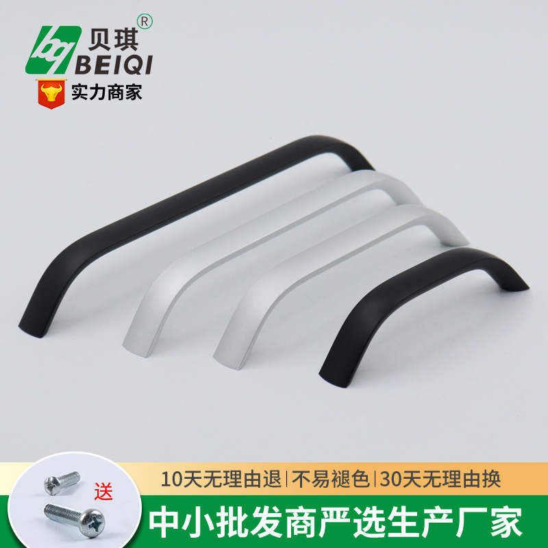 Fashion pabrik langsung aluminium solid sederhana menangani laci lemari sepatu lemari Perak Hitam aluminium Aloi pegangan pintu