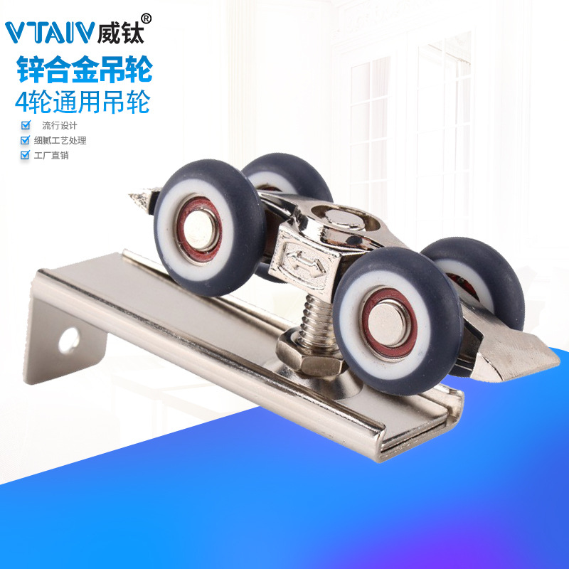 Aksesori rel rol katrol sunyi 4 roda, aksesori jalur geser pintu kayu nilon pintu geser kepala datar