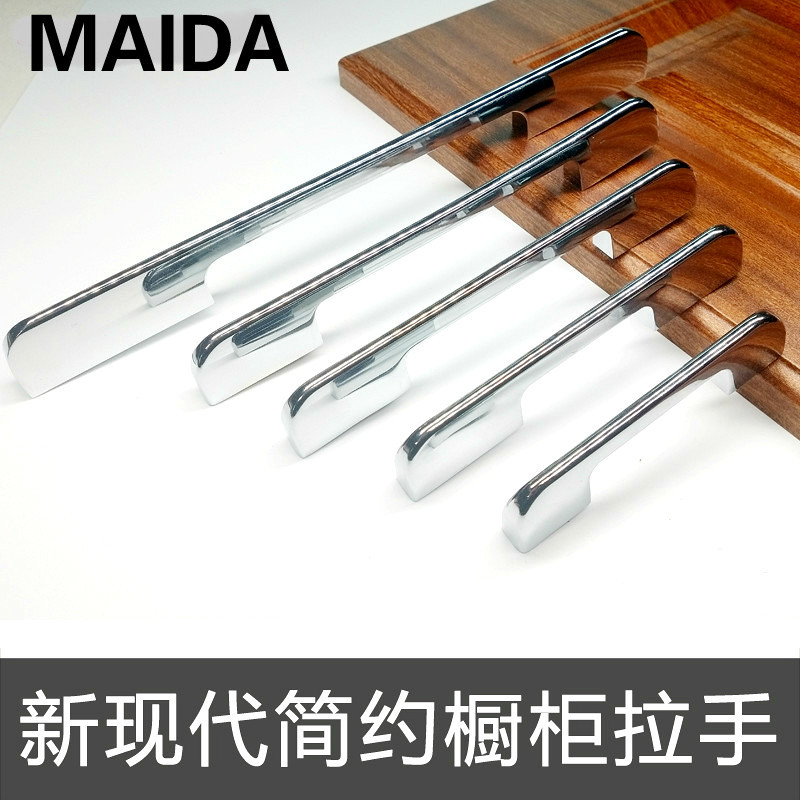 Pegangan pintu kabinet minimalis modern paduan seng populer gagang lemari kabinet furnitur lemari pakaian krom terang A3400 stok tersedia