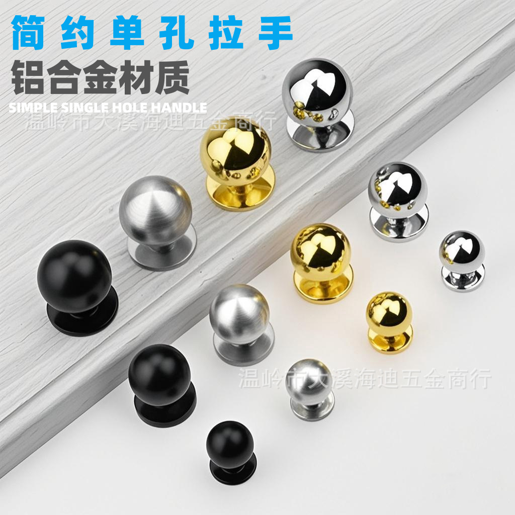 Modern sederhana paduan aluminium bola satu lubang pegangan tarik warna emas hitam cerah lemari laci lemari pakaian mini