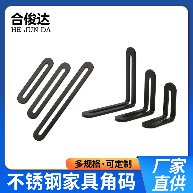 Perlengkapan furnitur perangkat keras besi sudut tipe-l, braket kode sudut hitam blok tetap, sudut kanan 90 °, Kode sudut baja tahan karat