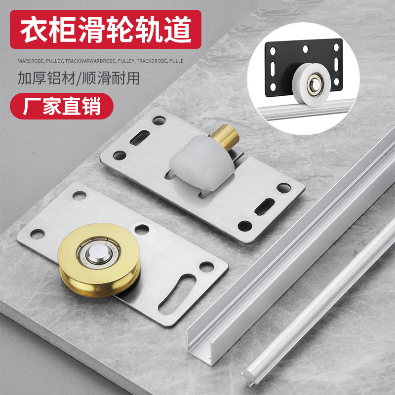 Rel pintu geser Kabinet, jalur pintu geser, pintu geser atas dan bawah, Loker rel datar, pintu geser, rel panduan katrol, aksesori monorel