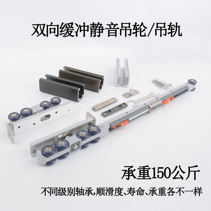 Trek pintu geser dapur, rel gantung aluminium Aloi, jalur rel pintu geser dua arah, penyerap guncangan, roda gantung gantung