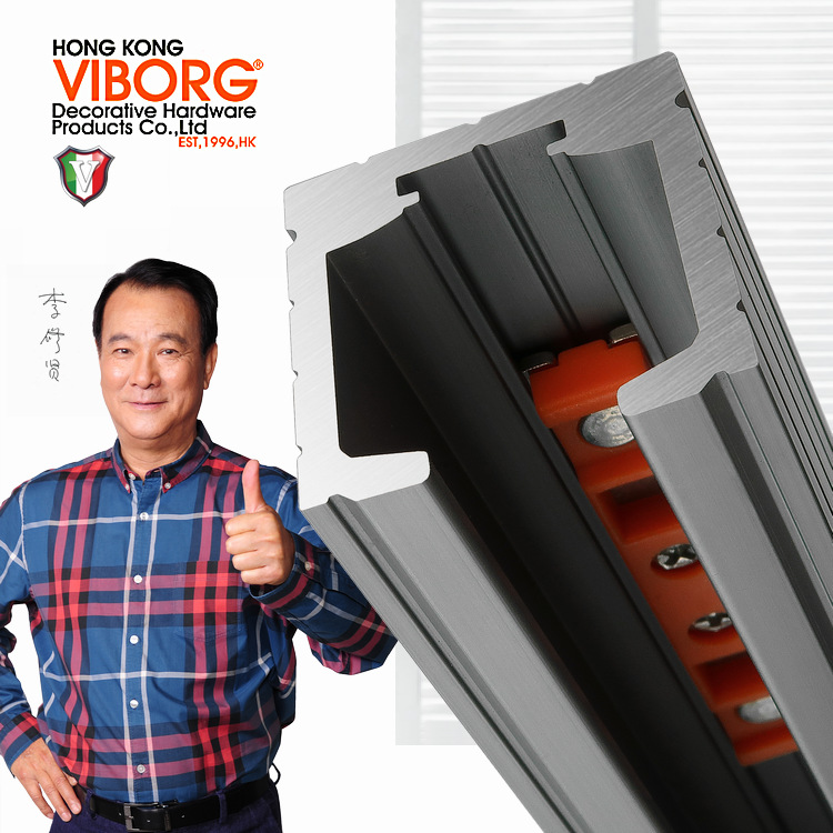 Rel tirai bebas lubang pemasangan tenang rel geser pemasangan atas rel lengket