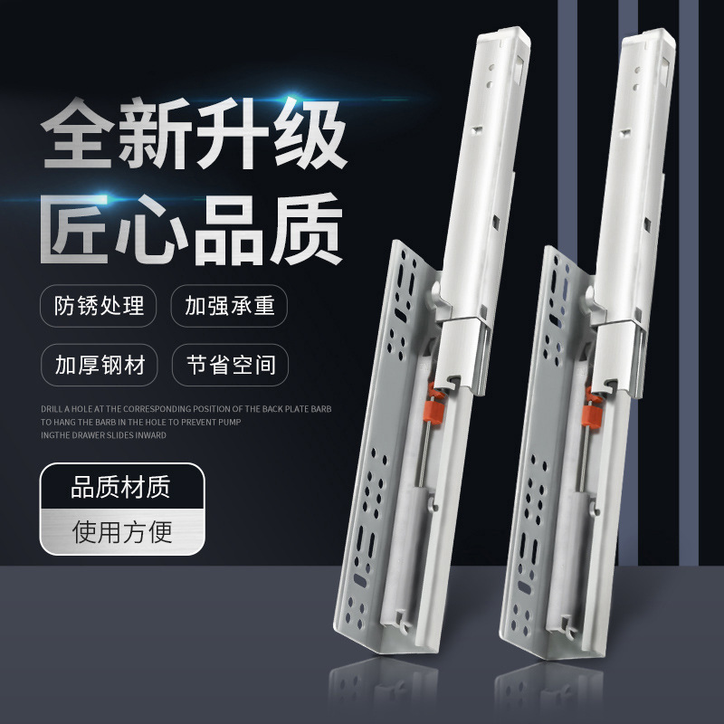 4510 Tiga Bagian Buffer Slide Rail Lemari Lemari Lemari Side Redaman Laci Penyangga Rel Panduan Ekstra Tebal Rel