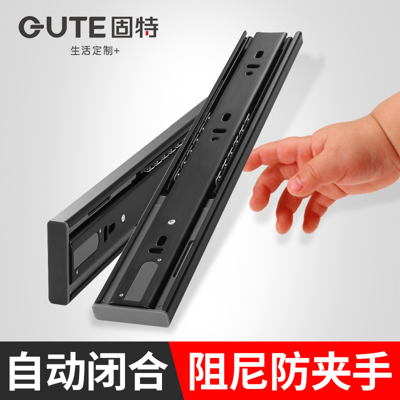 Gute laci rebound baja tahan karat rel geser rel penyangga hidrolik redaman rel lemari kabinet tiga bagian rel
