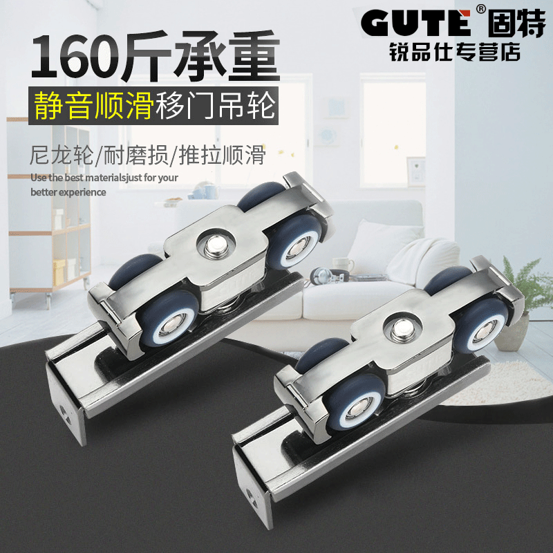 Gute pintu geser baja tahan karat, roda gantung pintu geser dipertebal tidak bersuara, pintu geser rel geser 4 roda pintu geser