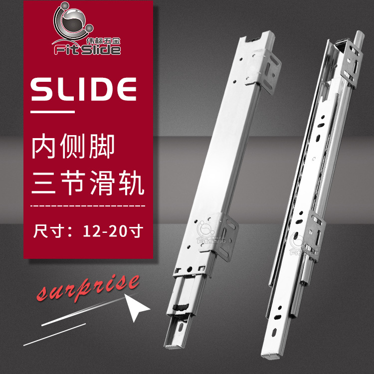 Pasokan produsen besar tiga lipat rel geser baja linting dingin kualitas tahan lama rak Laci kabinet rel geser