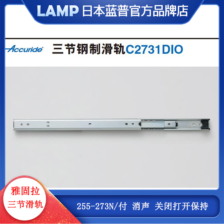 Accuride Yagura laci tiga bagian baja rel geser dipasang di samping rel panduan kabinet tarik C2731DIO