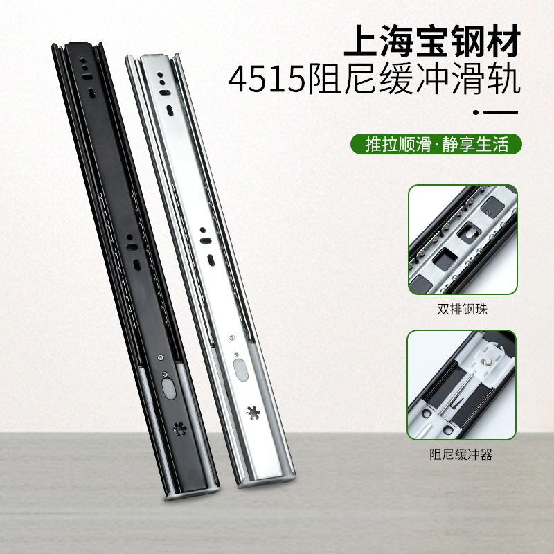 4515 penyangga peredam laci geser rel kabinet hidrolik rel panduan tebal bola baja diam tiga rel geser