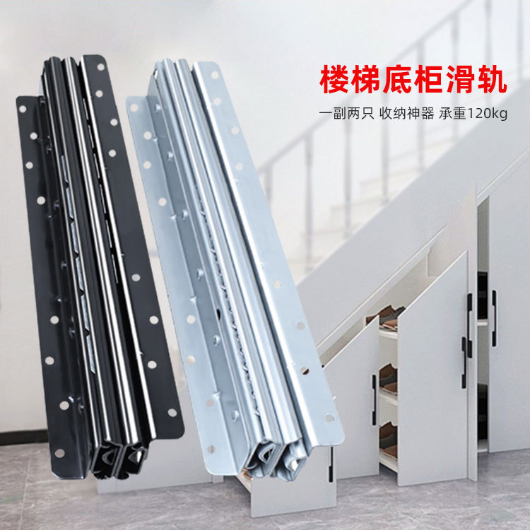 Rel bawah tangga, rel geser kabinet bawah tangga tebal, rel super berat, tarik teleskopik, tiga bagian, panduan kabinet sepatu, rel geser