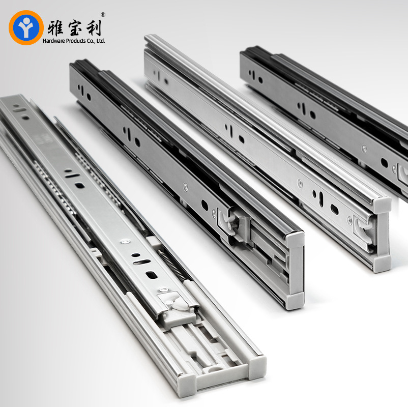 Laci rel geser baja tahan karat rel peredam guncangan rel kabinet mebel rel lemari pakaian bola baja rel tiga bagian pasokan langsung dari pabrik