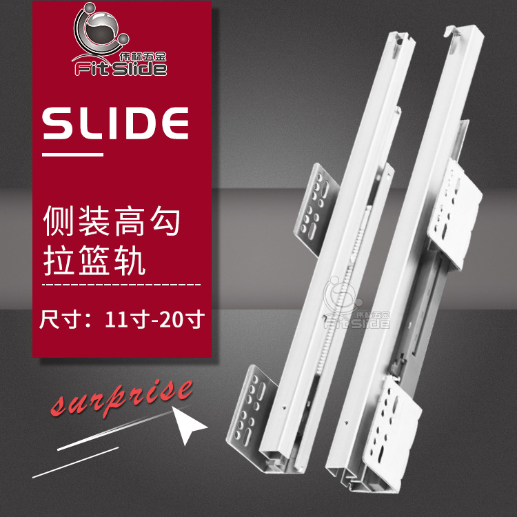 Keranjang tersembunyi terpasang di samping, rel geser dapur tabung persegi vertikal terpasang di samping lemari rel mangkuk geser