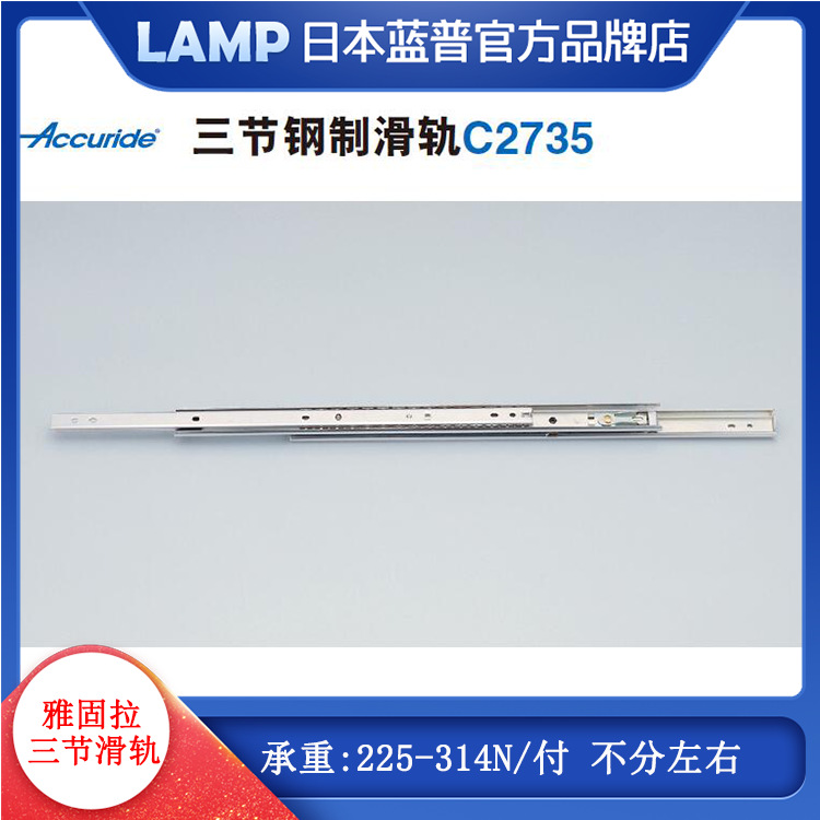 Accuride yagra laci rel geser baja, tiga-bagian rel panduan pemasangan sisi rel, jalur ekstensi penuh C2735