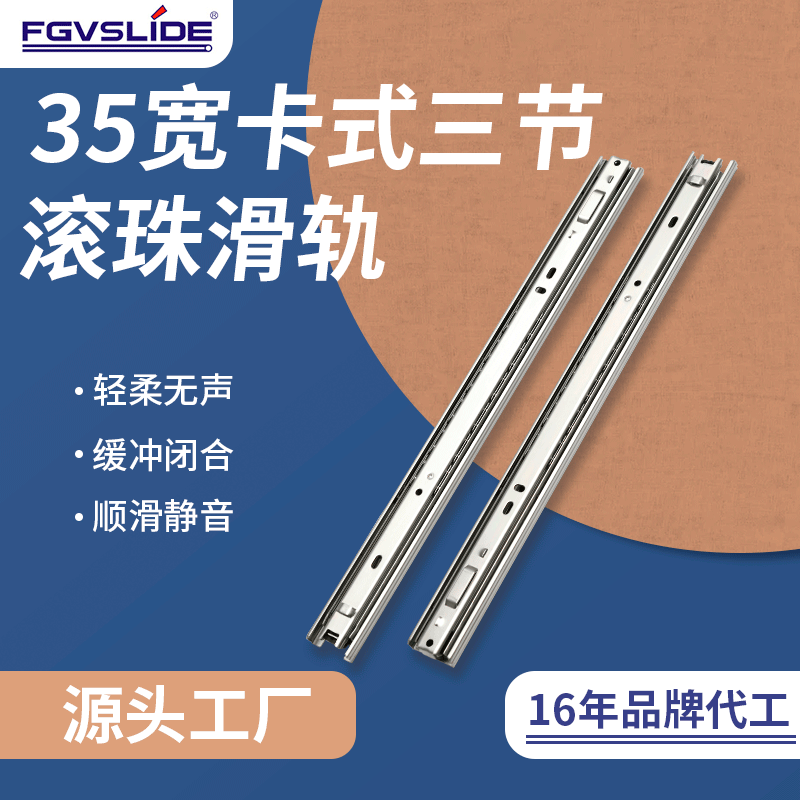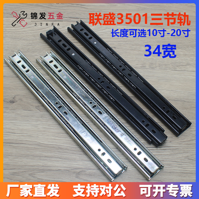 Pasokan produsen rel geser 35mm sisipan lebar rel geser kabinet baja tiga bagian Laci rel panduan rel geser rel geser