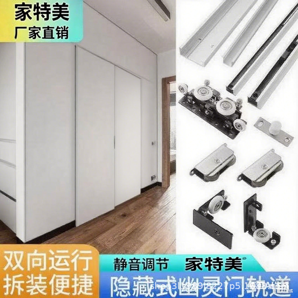 Aksesoris Perangkat Keras Pintu Hantu Dua Arah Jalur Tak Terlihat Partisi Dapur Kamar Tidur Geser Pintu Kayu Pintu Geser Khusus