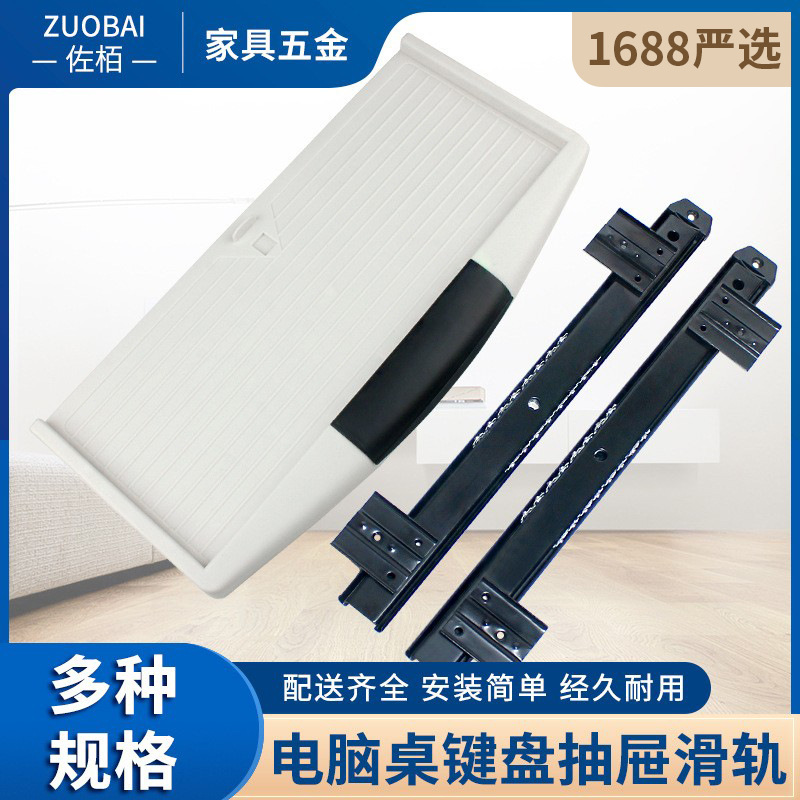 Rak Keyboard baja digulung dingin, rel geser plastik baki keyboard meja komputer keyboard laci dua bagian bawah mendukung rel panduan