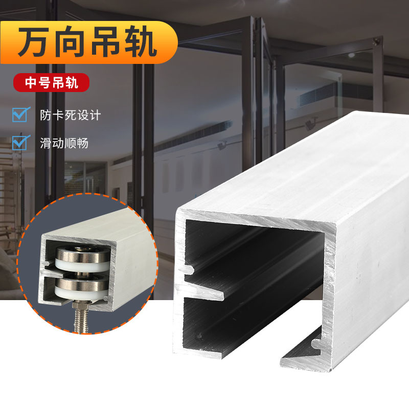 Rel gantung Universal pintu geser lipat, rel gantung tebal, jalur gantung, aksesori pintu roda, perangkat keras, pintu geser universal berputar