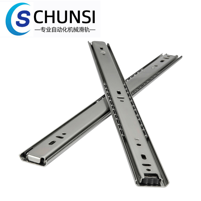 Pasokan langsung dari pabrik 304 rel panduan furnitur peredam bising jalur laci tebal baja tahan karat tiga rel geser peredam suara