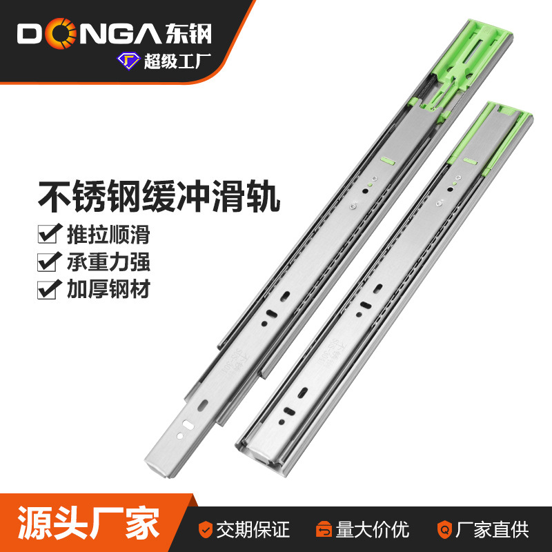 Donggang laci tiga bagian baja tahan karat, rel geser tidak berisik rel geser rumah grosir bawah rel geser