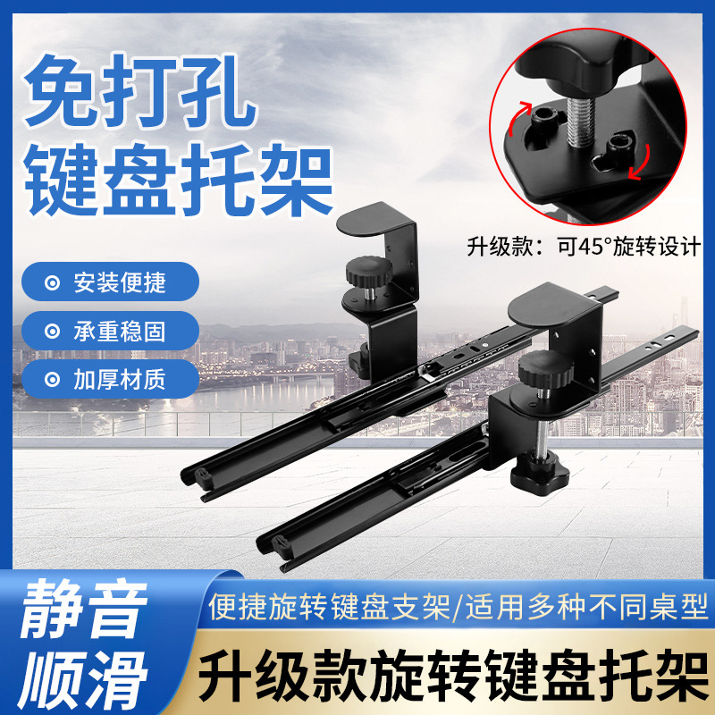 Braket keyboard meja komputer ditingkatkan, rak keyboard baki pengangkat laci geser dengan klip dapat diputar