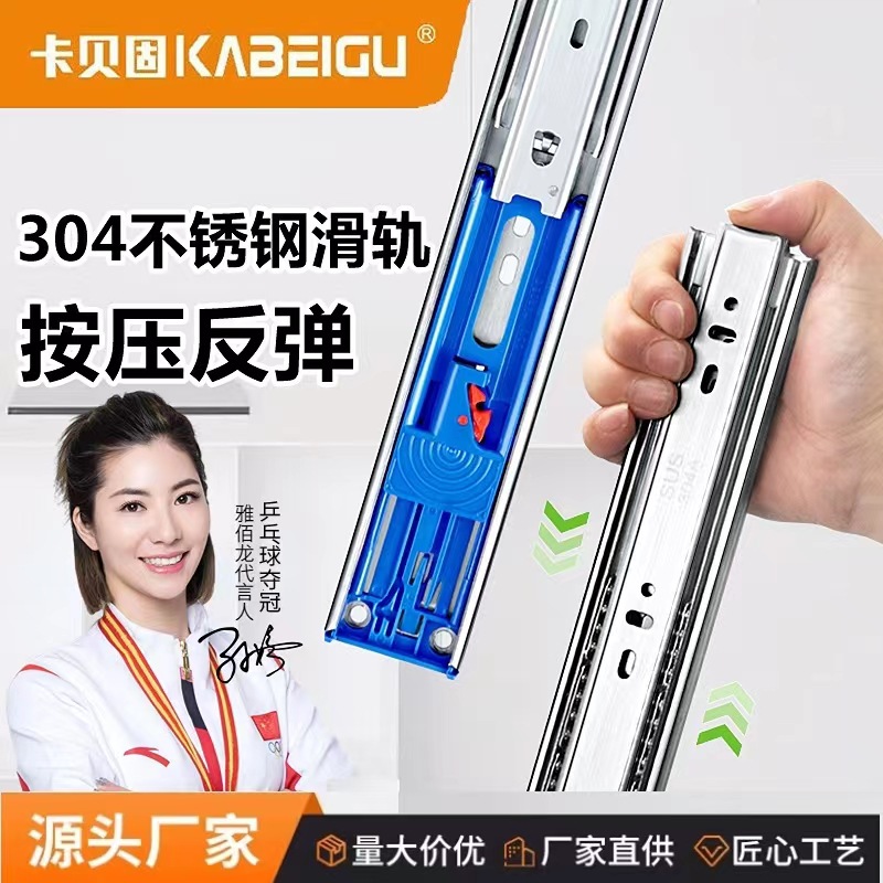304 rel geser laci rebound baja tahan karat Handel-Free Press bisu tiga jalur tekan elastis bawah laci track