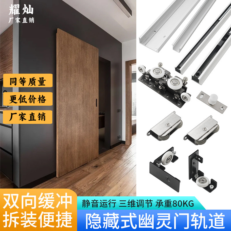 Aksesoris Perangkat Keras Pintu Hantu Pintu Kayu Tak Terlihat Tanpa Rel Pintu Geser Jalur Kamar Tidur Kamar Mandi Dua Arah Penyangga Geser Tarik dan Geser