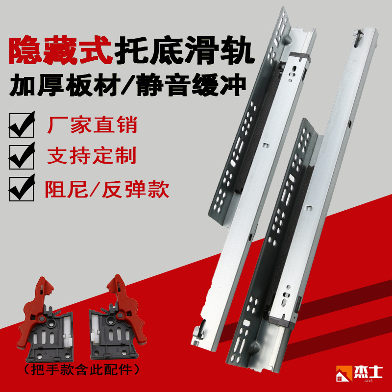 Grosir tiga bagian bawah laci geser bisu buffer Jalur tersembunyi menebal tidak menangani panduan rebound