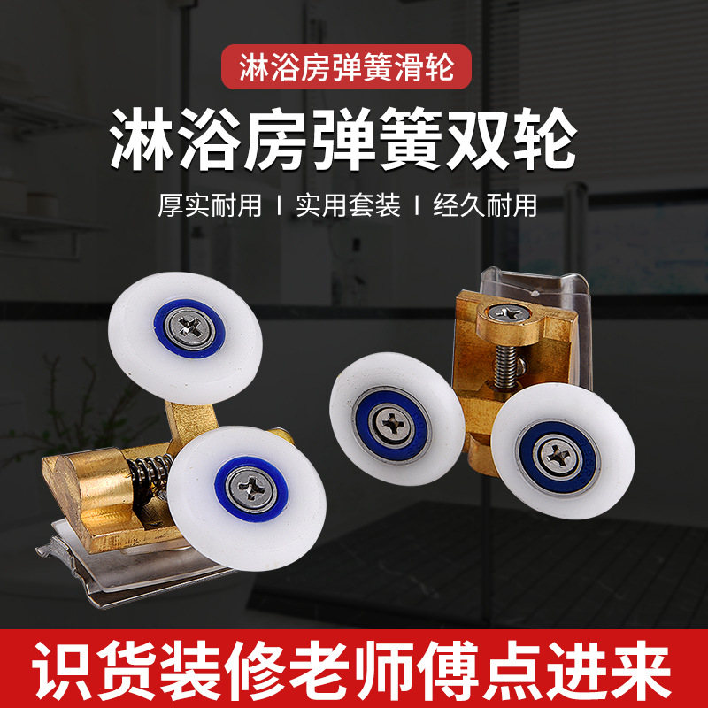 Rol ganda pintu geser kamar mandi, roda pantul atas dan bawah tembaga murni, katrol kamar mandi kaca geser