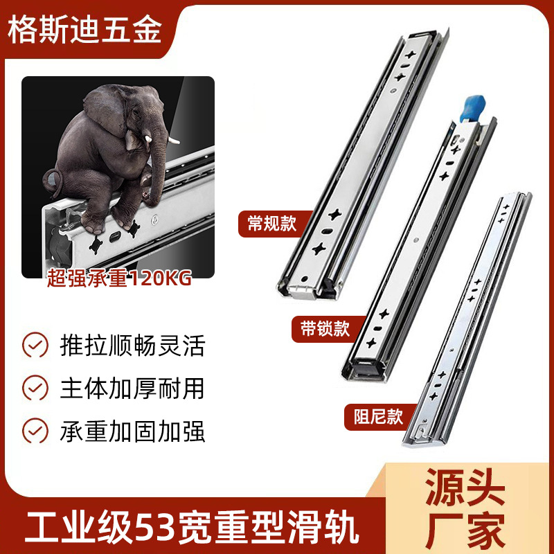 * 53 lebar industri tugas berat rel panduan rel rel geser laci dengan kunci penahan beban tinggi tiga bagian 100kg self-lock