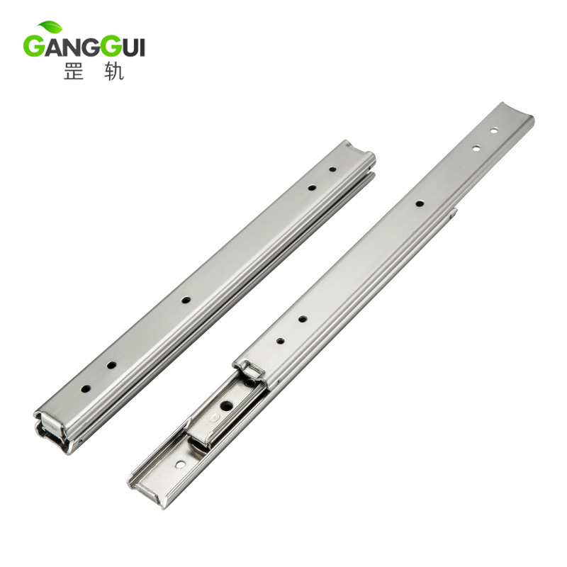 Lampu Lanpu rel geser tiga bagian baja tahan karat 304 rel panduan laci samping bola baja tahan karat rel geser ESR4513