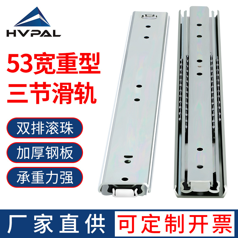 Kelas Industri 53 Lebar Heavy Duty Slide Tiga Bagian dengan Kunci Redaman Bantalan Jalur Baja Slide Tebal Rel Panduan Grosir